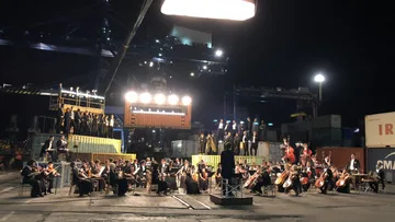 Mike sat down with the team at the early stages, to plan how best to tackle the sound on a night shoot…. with an orchestra… and double choir…. outside…. over three nights…. on a working dock in the Ukrainian port of Odessa. Sam had already done a comprehensive music search and we were unable to better it, as Verdi bullied his way to the front of the queue.