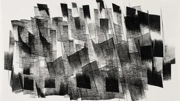 Composer Simon Whiteside chose ‘Inversions’ by Mary Martin a huge sequential artwork comprising of 96 aluminium panels which reflect the viewer and surrounding gallery. An abstract piece which aims to make the viewer consider the space in which they view the work. Whiteside's correlating track ‘Inversions’ creates a canvas for a wide range of elements, using an ensemble of ten violins which cycle through clusters of canonically arranged notes. The other sections of the orchestra undulate in volume and rhythm, creating a hypnotic, meditative mood analogous to Martin’s sequential style.