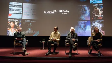 Left to Right: Chris Jones from Audible, Nathan Freeman from Granny Eats Wolf, Dirk Maggs Writer/Director/Producer, and Laura-Leigh Smith from String and Tins at Dolby Day, Battersea